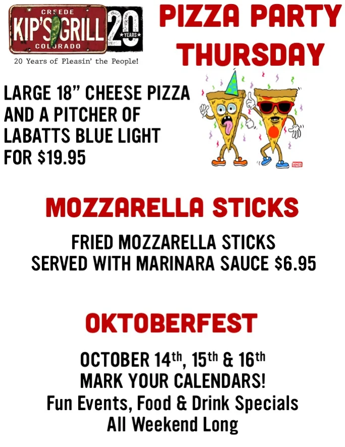UPCOMING EVENTS AT KIP'S GRILL IN CREEDE